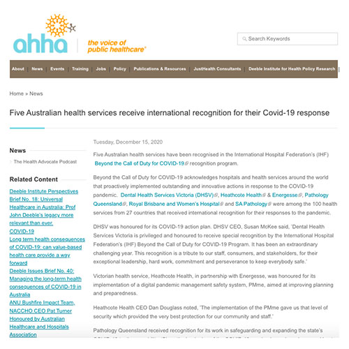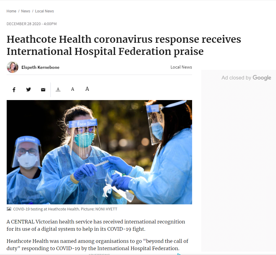 Heathcote Health coronavirus response receives International Hospital Federation praise